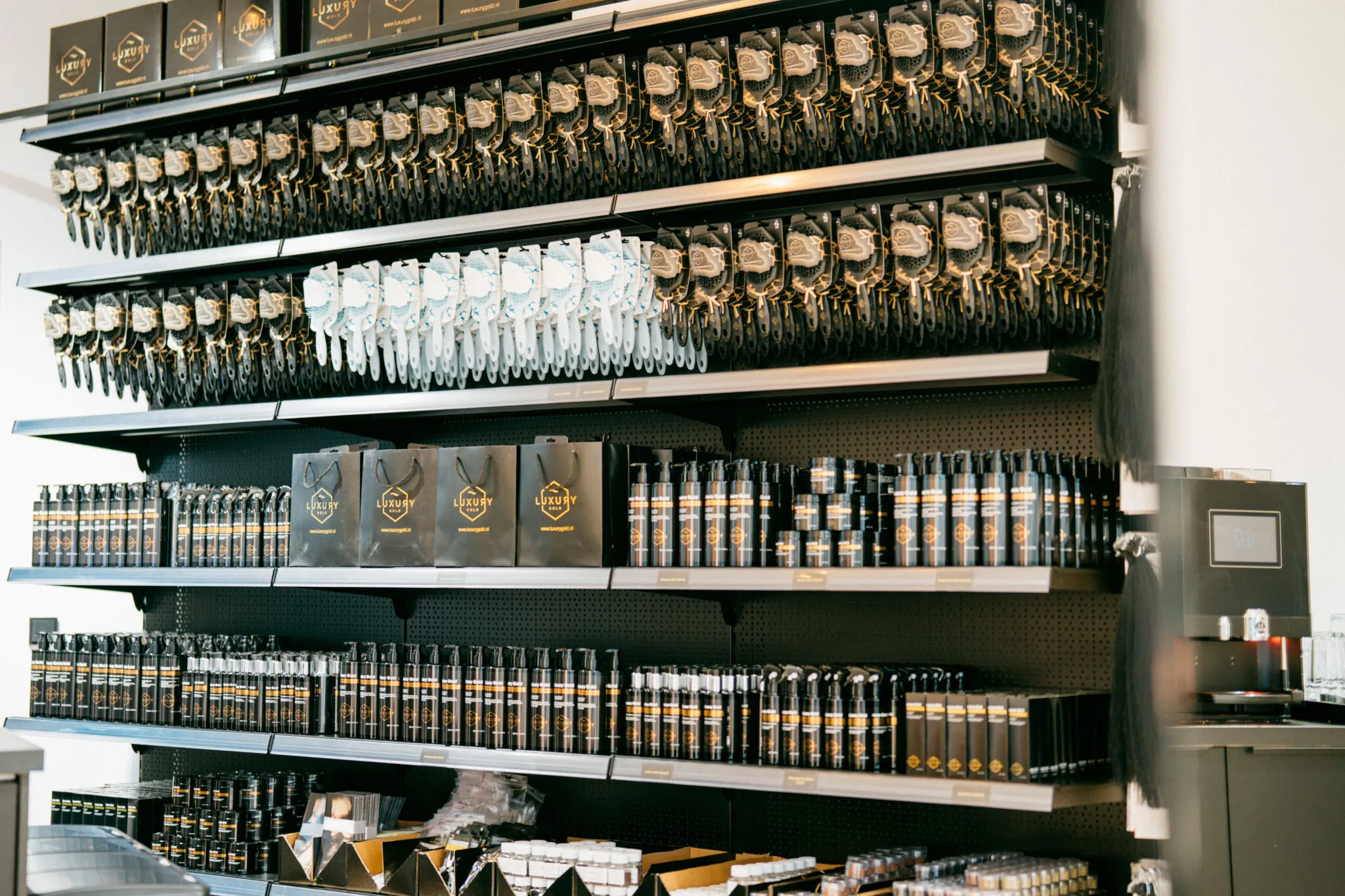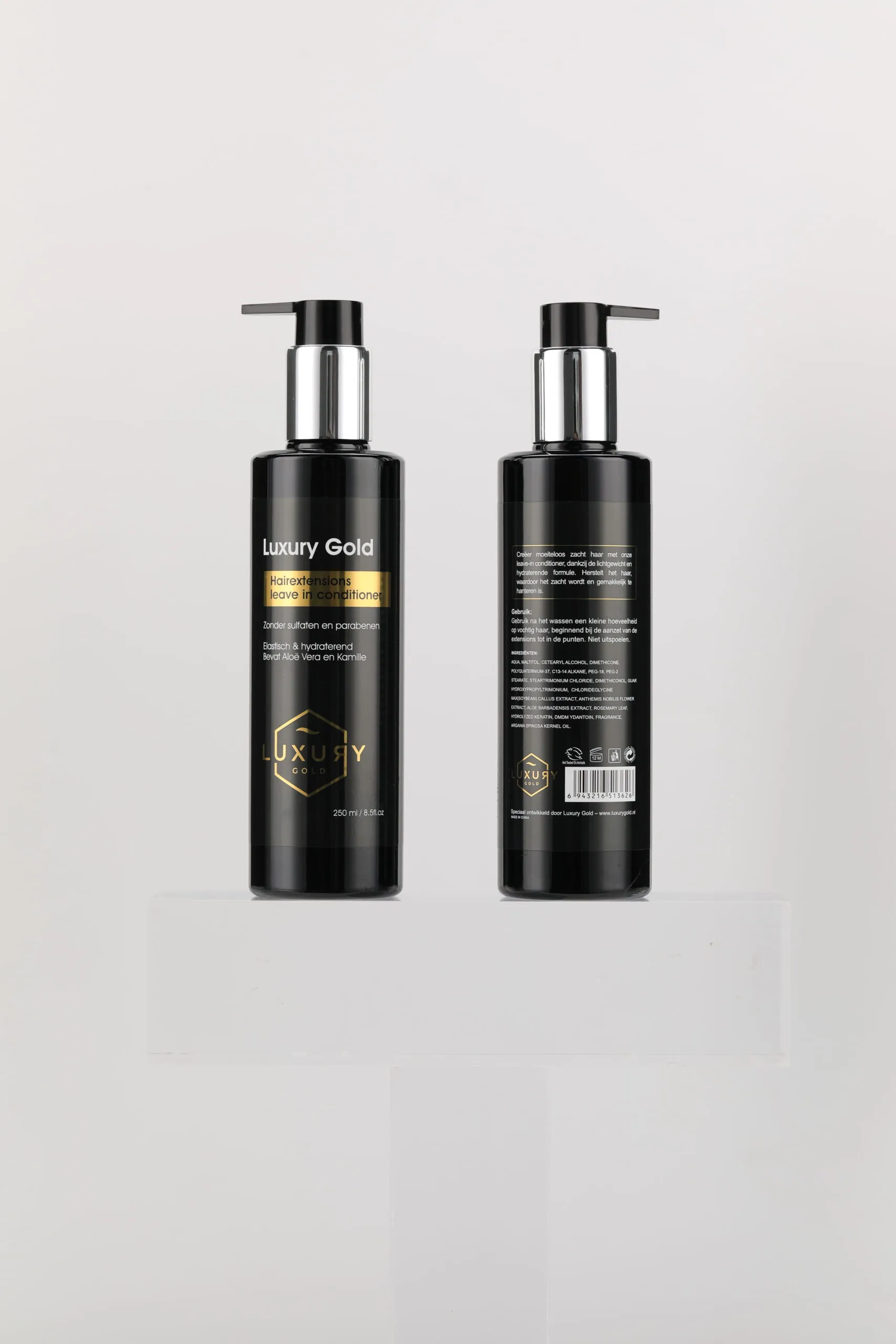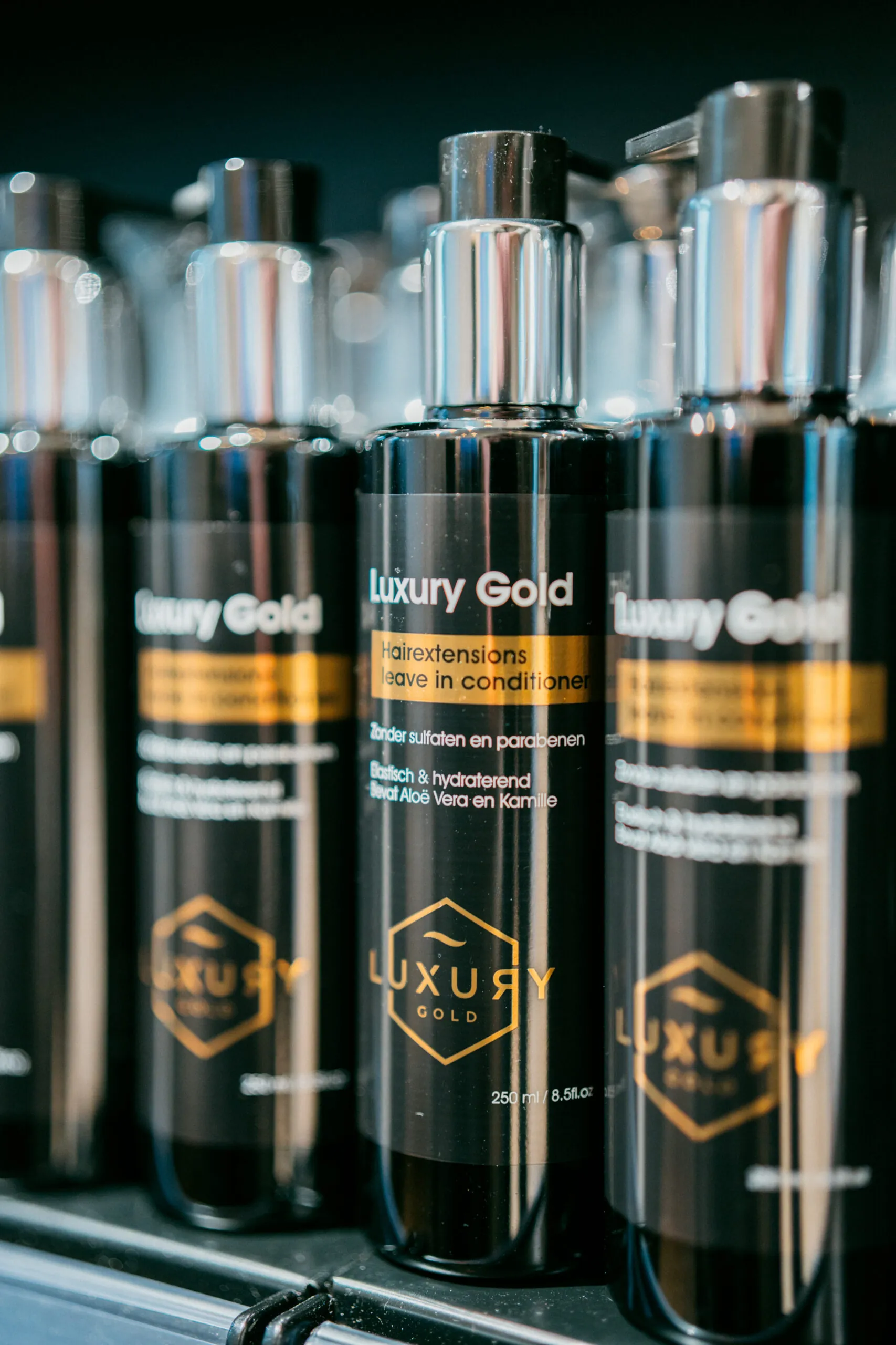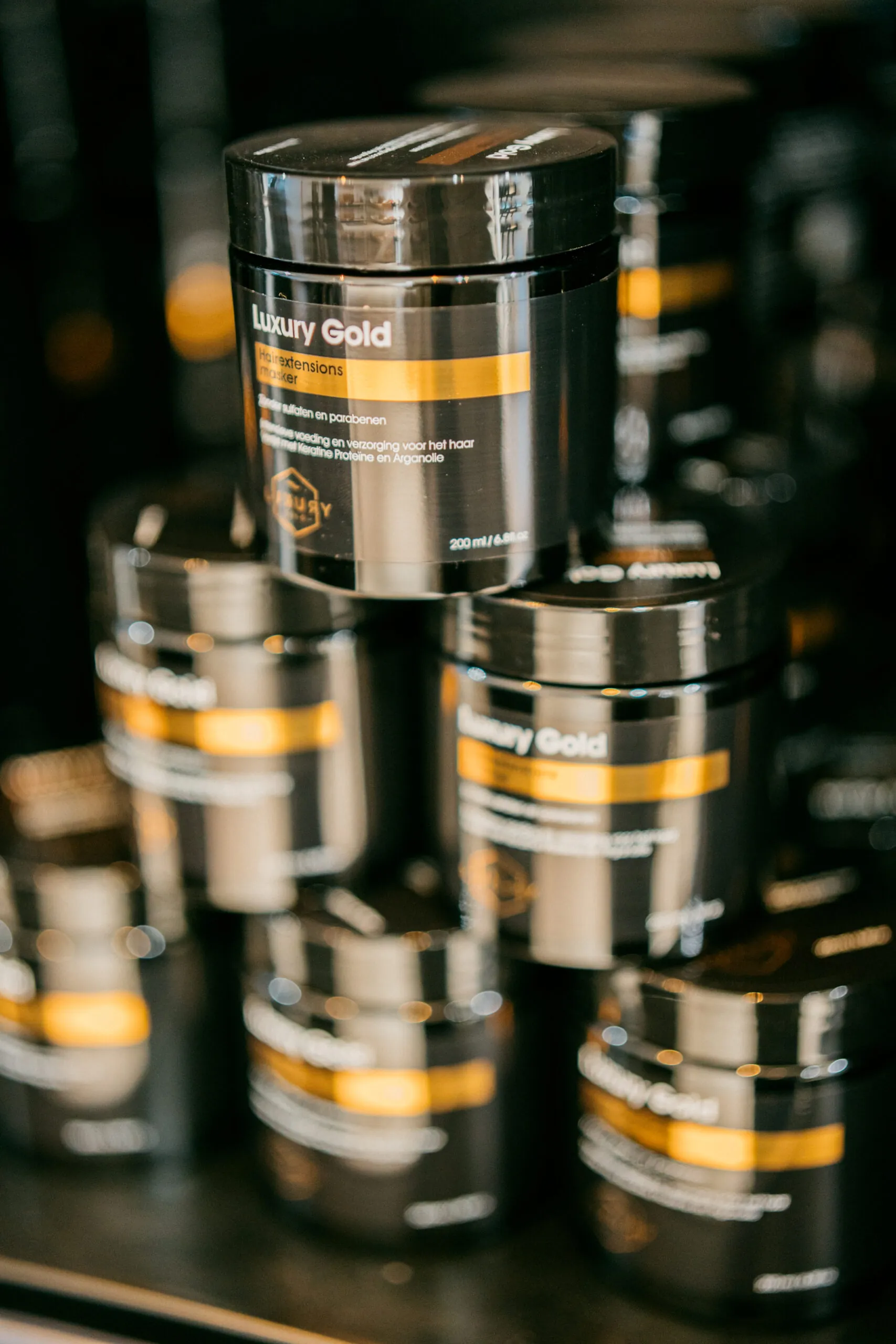 Daarmee begon onze zoektocht naar verzorgingsproducten die perfect passen bij de hairextensions die wij leveren. Wat volgde was een intensief proces van meer dan een jaar waarbij we beurzen hebben bezocht in binnen- en buitenland, talloze samples van leveranciers over de hele wereld hebben laten komen, maandenlang gefinetuned aan de perfecte samenstelling, werking en geuren en in 2023 hebben we onze eigen Luxury Gold verzorgingslijn geïntroduceerd, bestaande uit 6 producten. Echte must-haves voor jouw salon en voor iedereen die hairextensions draagt.